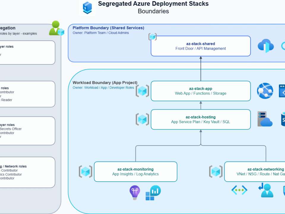 February 23, 2026Published by Dan Rios on February 23, 2026Categories CommunityMicro deployment pattern with Azure Deployment StacksWhat are micro deployments? Micro deployments are a simple concept: breaking your application infrastructure into smaller, contained deployment units that share the same lifecycle boundaries. Each […]